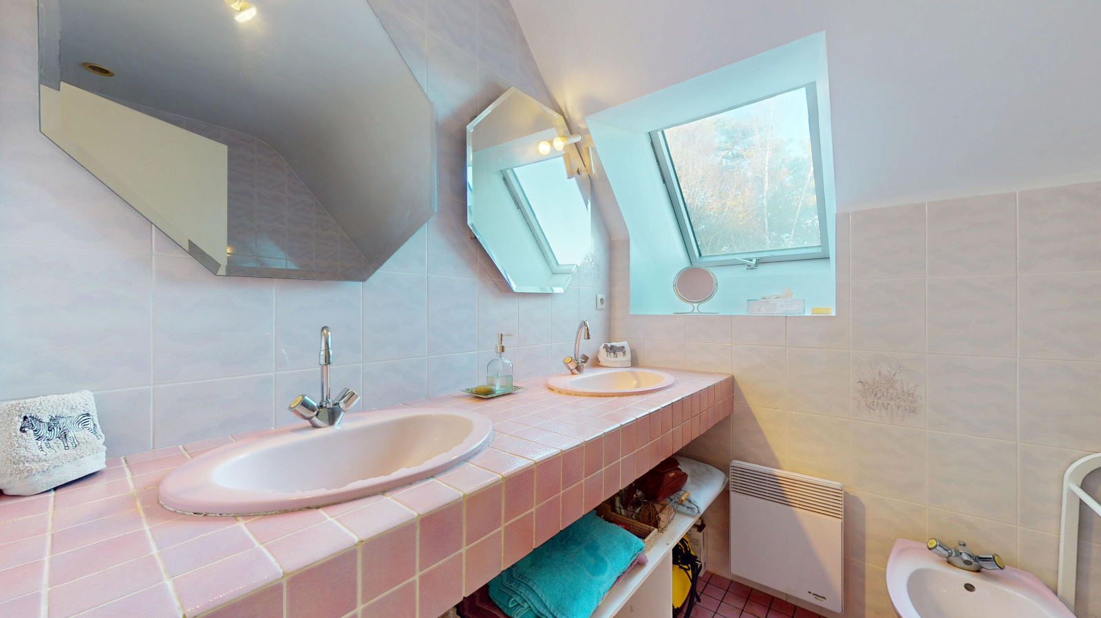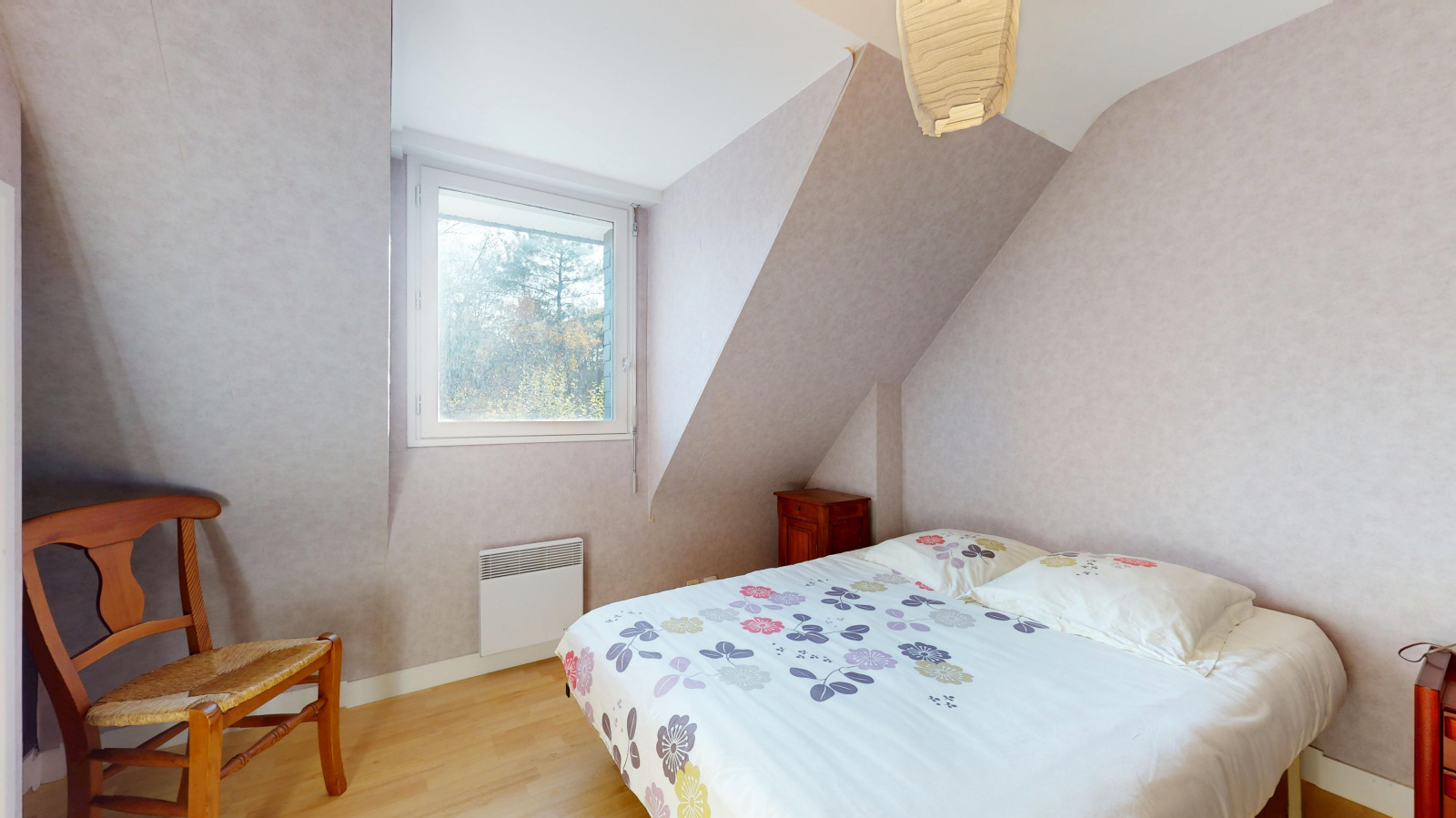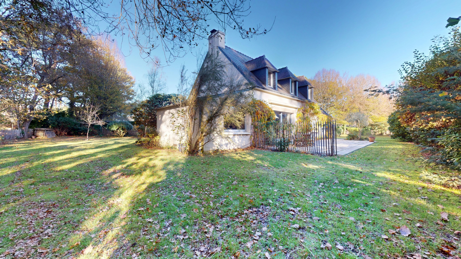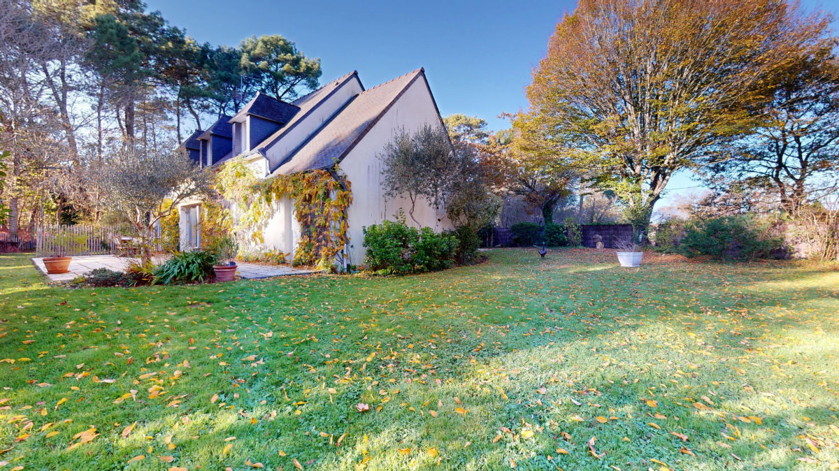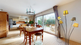 Environnement préservé et boisé pour cette villa offrant un salon-cuisine de 55m² avec cheminée et accès direct sur le jardin.